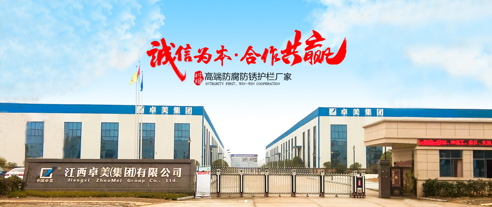 江西卓美金属制品有限公司位于国家金属产业之乡,江西省樟树市金属产业创业园区,占地50亩。注册资金3000万元,总投资11000万元,兴建了面积35000多平方米的生产基地。安装了全国锌钢行业先进的进口瑞士金马双喷双烤流水线,一体化数控冲床机械设备。是江西及周边省份中锌钢行业里一家研发、生产、销售锌钢护栏、围栏、楼梯扶手、空调栏、交通护栏、百叶窗等防护系列型材、配件、及护栏成品规模很大的专业现代化锌钢企业。